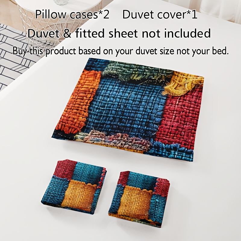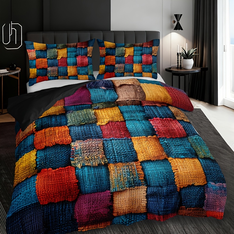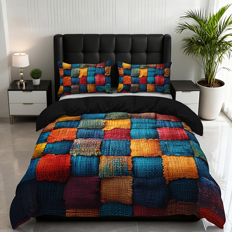 2/3pcs Plaid Color-Block Quilt Set | 1 Duvet Cover + 1/2 Pillowcases, All-Season High-Definition Print, Polyester, Machine Washable