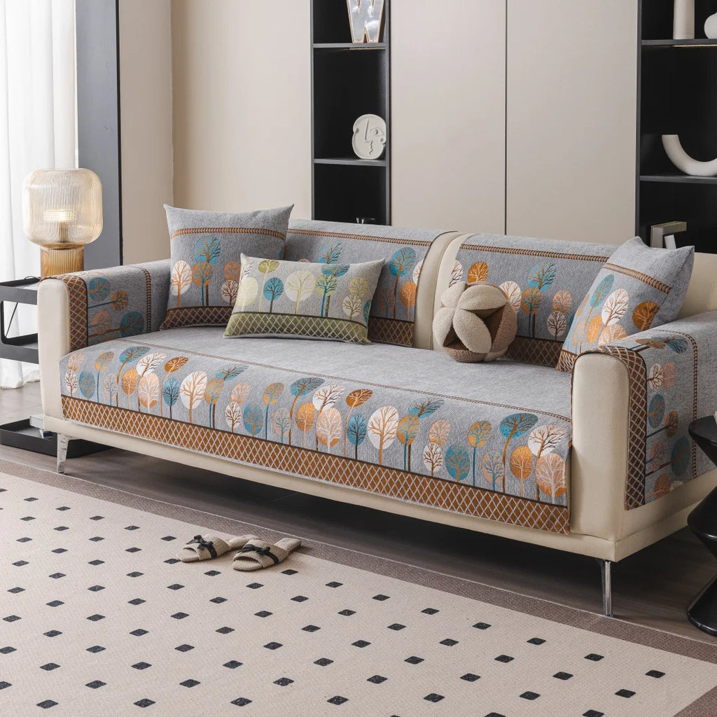 Boho Full Moon Tree Jacquard Chenille Sofa Cover – Anti-Slip | CasaChi