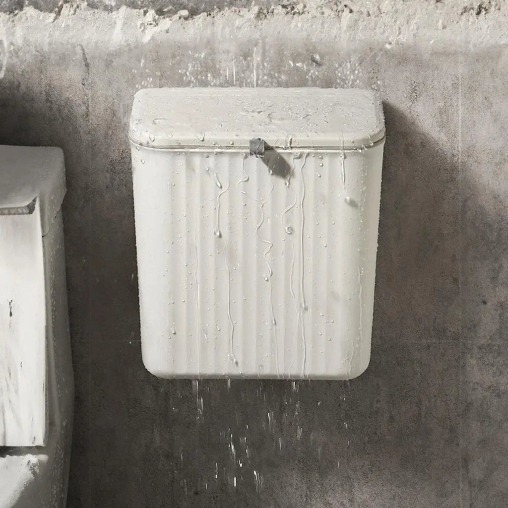 White wall-mounted trash can.